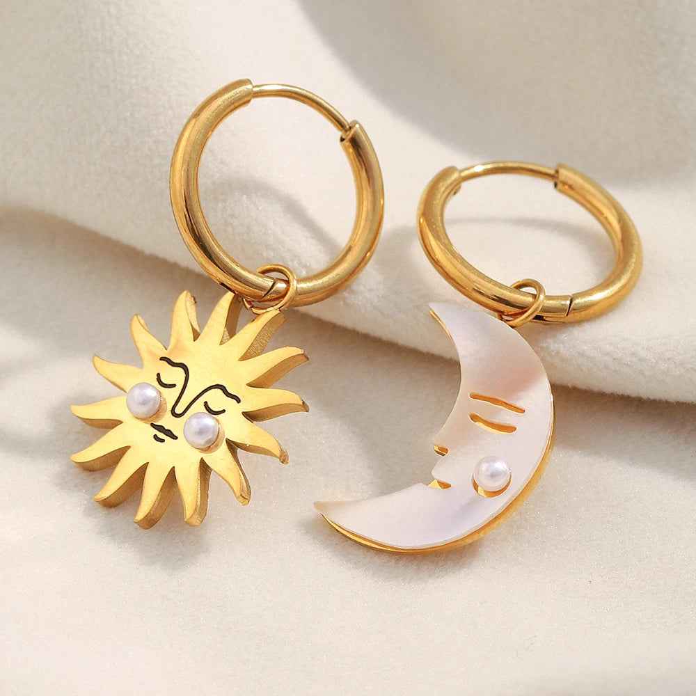 Embrace the cosmic jewellery trend with Aurora's exquisite sun moon gold earrings. Each pair features 18k gold plated stainless steel for a luxurious finish that won't tarnish or irritate sensitive ears.